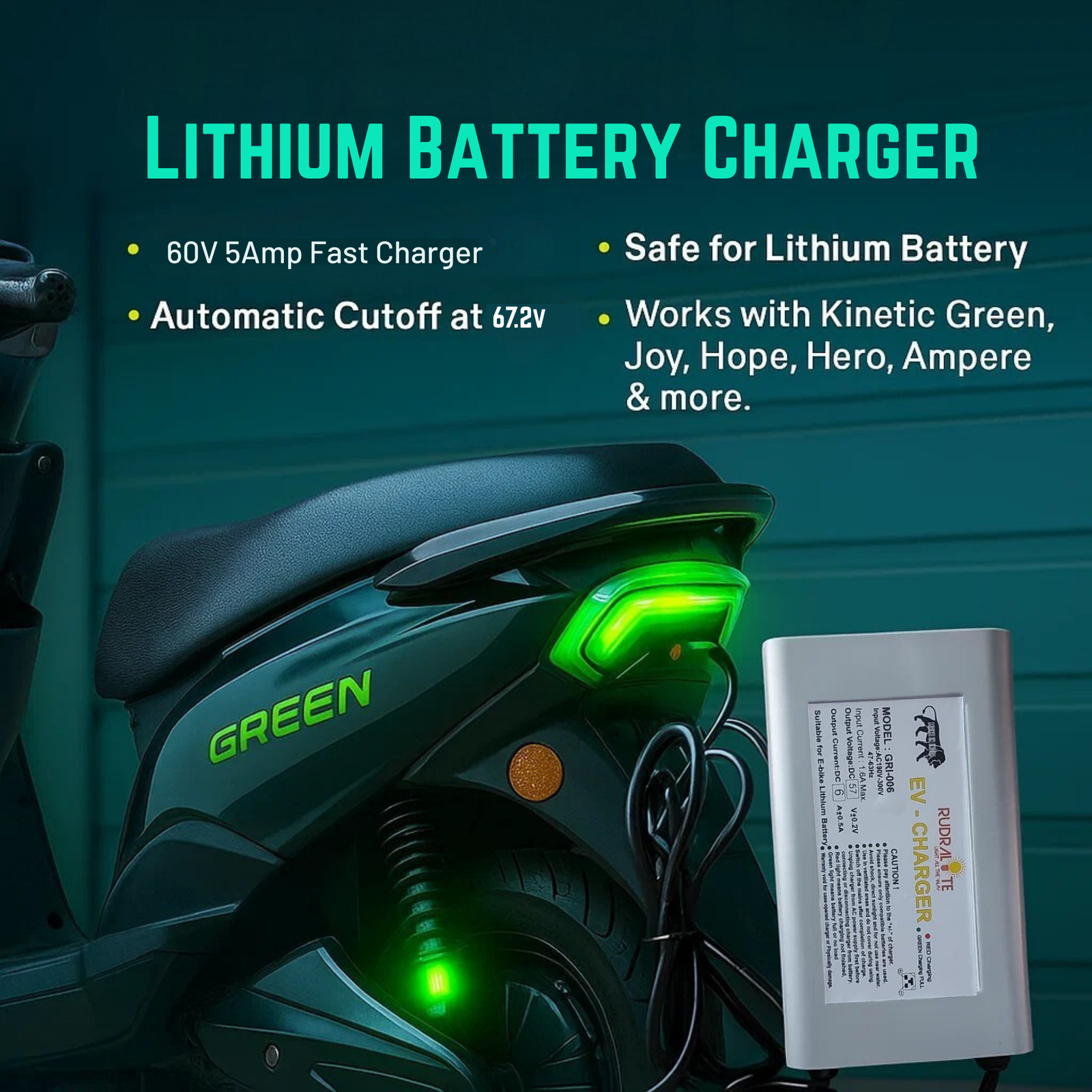 Rudra LITE 60V 5Amp E-Bike Electric Scooter Lithium Battery Charger Automatic Cutoff 67.2V for Kinetic Green, Joy, Hope, Hero, Ampere, and Other E-Bikes…